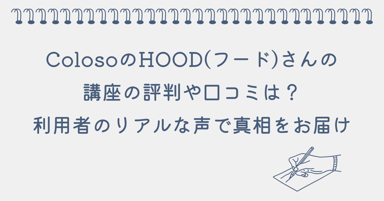 この記事では、Coloso(コロソ)で受講できるHOOD(フード)さんの講座のリアルな口コミや評判をお伝えします。
